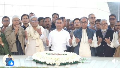 তারেক রহমানের আগমনকে কেন্দ্র করে সমাধিসৌধ এলাকায় বিএনপি নেতাকর্মীদের ব্যাপক উপস্থিতি লক্ষ্য করা যায়।