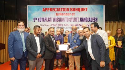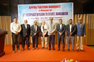 ডেস্ক রিপোর্ট ::সিলেটে রোটাপ্লাস্ট ইন্টারন্যাশনালের নবম মিশনের সফল সমাপ্তি উপলক্ষে সম্প্রতি এক আনুষ্ঠানিক সমাপনী অনুষ্ঠানের আয়োজন করা হয়। এ মিশনের আওতায় সিলেট বিভাগের ৫৪ জন রোগী—যাদের অধিকাংশই শিশু—বিনামূল্যে ঠোঁট ও তালু কাটা, মুখমণ্ডলের জন্মগত বিকৃতি এবং দগ্ধতার জন্য জীবন পরিবর্তনকারী পুনর্গঠনমূলক সার্জারি সেবা পেয়েছেন।