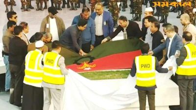 সাবেক প্রধানমন্ত্রী ও বিএনপির চেয়ারপারসন খালেদা জিয়ার জানাজায় অংশ নেন প্রধান উপদেষ্টা অধ্যাপক মুহাম্মদ ইউনূস। এছাড়া প্রধান উপদেষ্টার পাশে ছিলেন তিন বাহিনীর প্রধানসহ অন্যান্যরা।